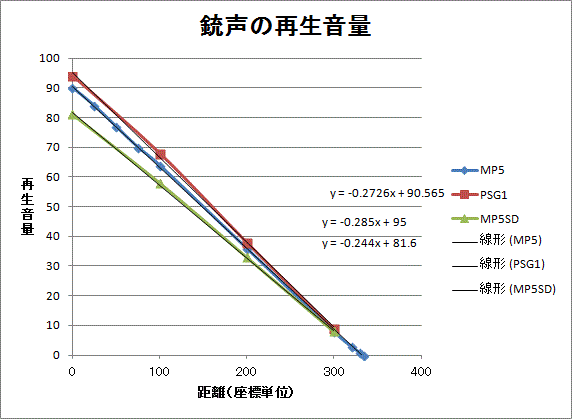 もう6月も終わりそうなんですね。夏が目の前に迫っているようで。 OpenXOPSのプロトタイピングを続けており、とりあえず画面遷移 (オープニング、メニュー画面、ブリーフィング画面、ゲームプレイ 画面、結果表示画面 への切り替え)や、一部を除く描画周り、入力 周りの処理、サウンド再生 を作っていました。 Doxygen(ドキシジェン)へのドキュメント出力もやっています。 この辺は、なんだかとっても良い感じです。 同時進行で、あの手この手で本家XOPSの分析作業も進めています。 平面移動速度、落下速度、落下やグレネードによるダメージ計算、 武器の発砲音の再生音量などを調査しました。 落下速度以外は、納得できるかなりの精度で調査できています。 (銃声の再生音量・クリックで拡大) 再生音量は、距離に応じて線形に反比例していきます。 武器により銃声の再生音量は異なりますが、実は300ほど離れた時点 で殆ど差がなくなることが分かりました。『武器設定で再生音を大 きくすると、遠くまで聞こえる!』っというのは、事実でないことを 確認できました。 (注:ezds.dllに与えられる値。実際にスピーカーから流れている音量 ではない。) いつの時代も、当たり判定は厄介ですね。ちょっと試してみましたが、 全然うまくいきません。 AIには全く手を付けられていません。 後、ここにきて新たに直面しているのは、クラス設計の難しさです。 正直言ってデザインパターンを全く理解しておらず、完全にオレオレ 構造なクラス設計になりました。こんなコードを、オープンソースで ばらまいて恥ずかしくならないか、不安になっています。とは言いつつ も、今からデザインパターンを勉強するのは、手間だし面倒だし・・・。 別件で、人から頼まれている関係で、Raspberry Piを始めようかと 思い準備しています。 32ビットの700MHz CPUに、512MBのメモリー という十分な性能 で、OpenGLが動くようです。 これは、「おぉ?」って感じです。元は関係ない別件で触るつもり だったのですが、これにOpenXOPSを移植したら面白そうですね。