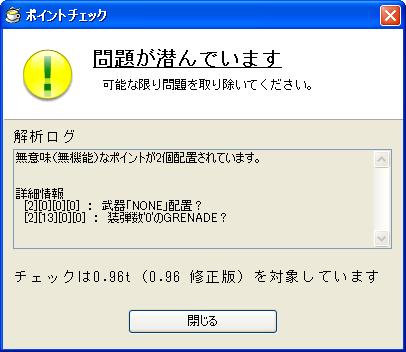 ポイントエディタ(XPE+)について少々。 XOPS関連の活動におけるロードマップ 〜ではない (2010年8月30日) このバカのように長いまとめられていない記事にて、 ・自分がどこを触っていたのか記憶になく、現状は作りかけで深刻なバグを 抱えてくる可能性がある ・HSPなんて殆ど覚えていない ・不安定な試作品の系統を進化させるつもりはない と明言しましたが、色々と考えが変わってきました。 先日ちょっと空いた時間に、久しぶりにXOPSのミッションを作っていた時のことです。 もちろん、自身が開発したポイントエディタを使って作業しているのですが、ふと 気が付いたことが。 普段(最近は作っていなかったので単語的には嘘)から、次期バージョン「β0.14」を 使って作業していました。 公開済みの「β0.13b」と大差ない、気が付かないほどの安定性でした。 何が言いたいかと言うと、 『作りかけで(どこかに)深刻なバグを抱えてくる可能性がある』 という理論でしたが、実際は作りかけでも何でもなく、しっかりと(当時の)作業の キリを付けてから手放したのだと分かりました。 もっと言うと、『直前にやっていた作業は ない』ということです。 今手元にある次期バージョン「β0.14」は、想像・想像をはるかに超えて、目立った 深刻なバグがない綺麗な物でした。 (なんか自分で言うのもアレですが・・) 『HSPなんて殆ど覚えていない』 とのことですが、これも他所で別件でHSPを使用した際に、思い出してきました。 「自転車に乗る」っといった事と同じで、あそこまで存分にやっていれば人間は そうそう忘れる事はないんですね。 最後の 『不安定な試作品の系統を進化させるつもりはない』 ですが、今も本心は変わっていません。 ただ、ゼロから作り直すのという作業自体が、いつ始められるか分からず、 実際に作業が始まっても、完成まで非常に時間が掛ることが予想されます。 作り直した完成品が形になるまで、現行の「β0.13b」で(使ってくださってる方々に) 我慢してもらうというのも、ちょっとアレなので、試作品のこの系統に少々手を加えて、 完成版の公開まで延命(?)しようかなと思います。 あと、現行の「β0.13(無印)」はバグを抱えており、修正版「β0.13b」を発行しています。 いつまでも本体+修正版というのも気に喰わないので。 次期バージョン「β0.14」の改良点というのは、この通りです。 「ポイントエディタ」の開発 -61 (2009年11月23日) ・・・いつの記事だよorz 改造MODに対応するべく、Xファイルのコンバーター(?)ならぬ物を搭載して、 改造MODでもある程度なら読み込めるようにします。 っと言うのは、2009年11月の話です。 ここ数日でちょっと触ってみました。 (画像は開発中の物です) 前々から「ポイントチェック機能を強化してほしい」という要望が上がってきていた ので、ポイントチェック機能をこれでもかと徹底的に強化しています。 あとはオプション設定をタブ表示で分類したり。 他にも色々と考えていますが、自分の時間との兼ね合いもあるので、やっぱり 出来た事のみ発表していくという方針でいきます。 公開時期は未定です。 3月中に公開出来れば良い方ですが、多分無理です。