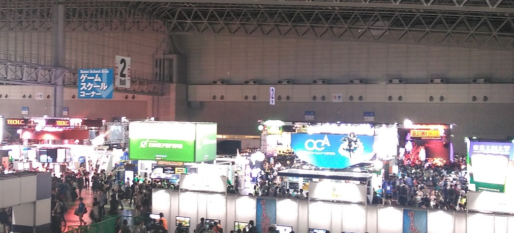 表題の通りですが、今年も知人と東京ゲームショウに行ってきました。 (クリックで拡大) ※東京ゲームショウ全体の様子は、他の方々のレポート・ニュース記事を ご覧ください。以下、私の主観が入っています。 大手の企業ブースやインディーズのコーナーも ざっと見て回りましたが、 例年通り、ゲームスクールコーナーを重点的に回りました。 ゲーム開発を学んでいる学生さんたちの作品が並んでいるブースです。 正確に数えて比較してないですが、出展する学校数が増えている気が します。 全校は見て回れないので、目に付いたブースだけ見ていました。 去年と同様、全体的には3Dよりも2Dゲームの方が多い印象です。 ゲームジャンルは例年同様、アクション・シューティング・アドベンチャー ・パズルなどでしょうか。 今年の日本ゲーム大賞のテーマが「はさむ」だったこともあり、モノを はさむことをテーマにした作品が多々見られました。 ボールをはさんで運ぶとか、時間内に星をはさんでスコアを競うような形式 になっていたりとか。 ここ例年よりも日本ゲーム大賞の影響が、少しだけ目立った感じですね。 プラットフォームは、圧倒的にWindowsPCが多いです。 スマホやタブレットもゼロではないですが、少数派な印象。 去年はVR作品がたくさんありましたが、今年はVRブームは一旦落ち着いた感じ (作品自体は多々ある)でした。VRゲームを出しているコーナーでは、VR ゴーグル用のマスクを用意している学校が多いあたり、VR展示のノウハウを 感じます。 去年流行っていた戦車ゲームも、今年は殆どありません。やはりコンテンツの 流行り・廃りが激しいですね。 開発者(学生や教員)がいるブースでは、開発環境も聞いてました。 3Dゲームの開発環境は、ほぼUnityでした。 稀にUnreal EngineやDXライブラリがある程度。DirectX APIやOpenGLを ネイティブで扱っている作品は、殆どありませんでした。(1・2校程度?) XNAは多分全滅してる。 2Dゲームはあまり見ていませんが、多分DXライブラリが多いと思います。 分かりませんが。 去年くらいまでは、開発環境を聞くと、 「ビジネスデイにゲーム会社の社員さんから環境を聞かれることはあっても、 一般公開日に開発環境を聞かれるのは初めてですよ。」 という雰囲気のリアクションをされていましたが、今年は、 「一般公開日でも、ごくまれに聞かれますね・・。」 とのことだったので、今年は自分たちみたいに開発環境まで突っ込んで聞く 人がパラパラいたみたいです。 現に、自分たちが質問している横で、似たような質問をしている人も見かけ ましたし。 同業者かな(^^; あとは、女子学生をコンパニオン代わりにしている学校が、やや減った印象 を受けました。それで正しいと思いますが。 今年に限った話ではないですが、流石に5年連続でゲームスクールコーナー 見てると、新鮮味がなくなってきますね。 それはそれで、定点観測みたいで面白いのですけど。 去年も同じことを行っていた気がしますが、来年はちょっと趣向を変えて 回るかもしれません。インディーズコーナーを多めに回るとか。 以下、おまけ。ゲームスクールコーナーの写真。 当然大手ブースに比べてれば人数は少ないですが、そこそこ人が集まって いました。 (クリックで拡大)
