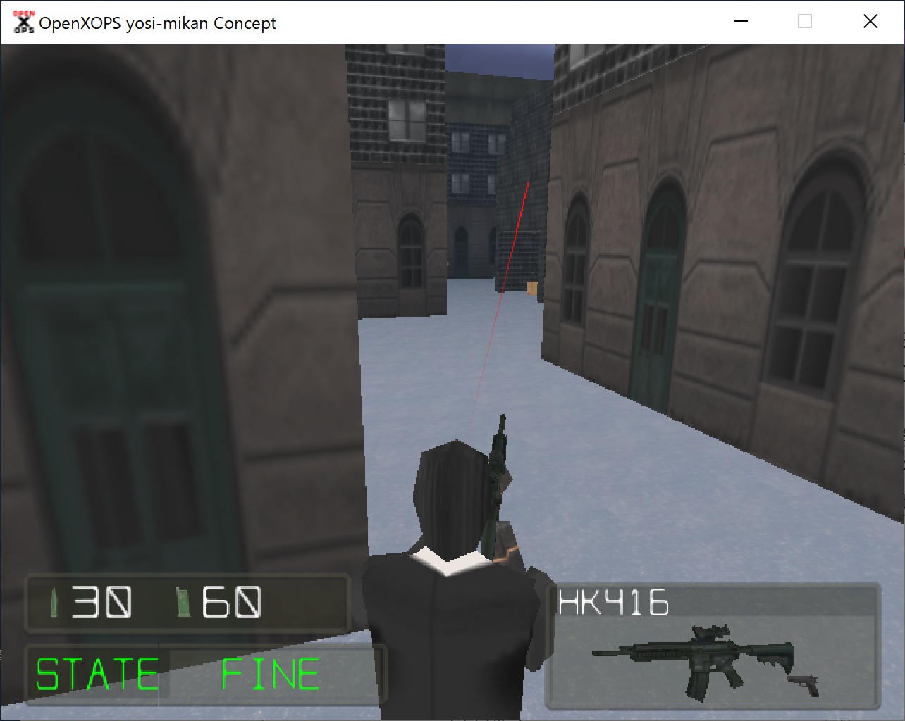 9月25日に駄場さん(前田さん)よりOpenXOPSの改造エディションである 『Training』、 そして、9月30日にyosiさんより『OXYMICON Vol.09』が公開されました。 駄場さん(前田さん) Training DL:https://bucket-for-daba-xops.s3.ap-northeast-1.amazonaws.com/OpenXOPS/Training_20220925.zip (Web:https://daba-no-heya.com/?page_id=24) yosiさん OXYMICON Vol.09 PV:https://www.youtube.com/watch?v=oqEwQPE18_o DL:https://ux.getuploader.com/dorayosi2526/download/78 このブログをご覧の方々は、既にどんな経緯で生まれた作品かご存じだと思う ので詳細な説明は割愛しますが、 駄場さんの作品は2021年1月に公開された『Rain Test』からの2作目であり、 yosiさんの作品は、今年3月25日に登場したVol.08のアップデート版です。 yosiさんの方は、作品が『OXYMICON』との命名になってから初アップデート ですね。 ゲーム本体や専用エディタを提供している [-_-;](みかん) より、 技術解説をしたいと思います。 ※解説上、一部作品のネタバレを含んでいます。ご了承ください。 駄場さんのTrainingも yosiさんのOXYMICON Vol.09も、exeのバージョン としては ver:0.37 です。両者に一部仕様差はあるのですが、基本的には 同じものがベースになっています。 なおOpenXOPSのベースはR329であり、結構新しいコミットを反映して います。 今回は分かりやすく、yosiさんの作品 旧Vol.08で採用された ver:0.36から (ver:0.37へ)の変更点を列挙します。 ・バースト射撃モード追加 ・被弾により攻撃を躊躇するAIモード追加 ・本家XOPSのaddonを読み込んだ際にメッセージを表示するように ・その他、諸々の仕様変更・修正 上記に加えて、yosiさん向けのexeには以下のカスタマイズが入って います。 ・ミッションプレイ中にF4キーでブリーフィングを表示する機能追加 ・三人称視点時に照準代わりの線を追加 ・リザルト画面にミリ秒表示を追加 ・メニュー画面に作品の利用規約を表示する機能追加 以下、変更点の詳細を解説します。 ※順番は並び替えています。 ■バースト射撃モード追加 XOPSでは、フルオート・セミオートの連射設定が存在しますが、今回新たに 3点バーストモードを追加しました。 実際には3点に限らず(作品制作側で)n点バーストが設定できます。 yosiさんの作品では、一部3点バースト対応武器が登場します。 この機能、今年の3~4月頃に開発しており既に自身の記憶が飛び掛けています が、当時のOpenXOPSの設計上バースト射撃なんて一切想定していなかった ので、OpenXOPSの武器発砲処理の深いところまで見直さなければならず、 実装がメチャクチャ大変だった記憶があります。 同機能自体は、本エディションでの実装を発端に開発していますが、他にも 使う人が居そうな有用な実装である気がしたので、後にOpenXOPS純正版にも R301としてコミットしています。 ■被弾により攻撃を躊躇するAIモード追加 新たなAI動作モードとして、AIが被弾した際に一定時間攻撃を躊躇する (発砲しない)機能を追加しています。 言葉で伝えるとよく分からない機能だと思いますが、yosiさんの作品だと LABO_CAP NKで使用されており、敵に非殺傷武器を発砲し敵の攻撃を封じる 演出に使われています。 ■ミッションプレイ中にF4キーでブリーフィングを表示する機能追加 これは書いて字のごとくなのですが、ミッションプレイ中にF4キーを押す ことで、一時的にブリーフィング文章と画像を表示する機能を付けています。 現状yosiさん向けのexeのみで、しかも標準ミッションでは表示が出ない 設計になっています。これは「プレイ中はブリーフィング文章が出ない・ 確認できない」という点がXOPS純正の動作であり、本来のXOPSのゲーム性 としてプレイヤーの記憶に頼ってミッションを進める節があると思われるため です。 ※機能自体を否定する意図はありません。 とは言え、自分で作っていて割と良くできた機能だと思っているため、後日 OpenXOPSの純正版にもコミットするかもしれません。(未定) ■三人称視点時に照準代わりの線を追加 何言っているか分からないと思いますが、F1キーによる三人称視点時に 照準代わりの線・レーザーが出るようになっています。 百聞は一見にしかず。画像で見せた方が分かりやすそうですね。 (クリックで拡大) これにより3人称視点でもある程度はプレイ可能かもしれません。 ちょっと慣れが必要そうですけど。 XOPSをやり込んでいるユーザーは薄々気が付いていると思いますが、XOPS の銃弾は銃口からではなく、頭から弾が出現して飛んでいます。 これは、目線の高さと発砲口を揃えることで、「目標を照準で捉えている のに手前下の障害物に弾が当たる」みたいな違和感を防ぐためです。 そういう意味では、厳密な解釈で線を出すと「目からビーム」状態になって しまうので、そのような みっともない描画にならないよう気を付けており 工夫しています。 これ、本当に1ピクセルの線を引いているだけなので、今思えばもう少し 工夫・改良しても良かったかもしれません。 ちなみに、話が逸れますが3人称視点での照準表示や発砲時の弾