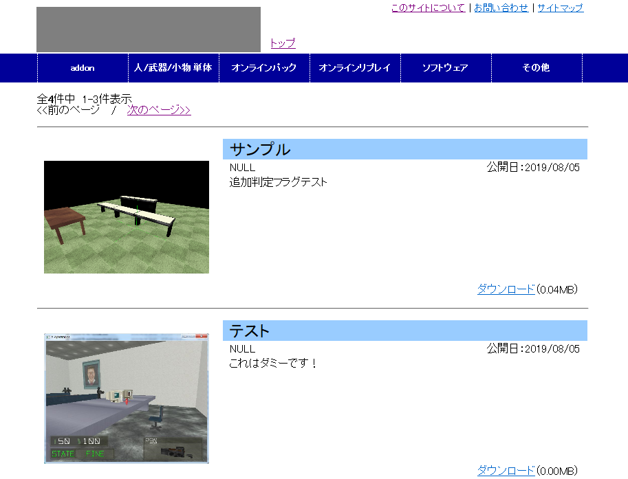 唐突ですが、連休中にPS4買いました。 新品のPS4 Proが買えればよかったのですが、さすがにそんな お金はないので、PS4 Slimの中古品です。 そして買ってから気が付いた『特にやりたいゲームがない』問題。 大体のゲームは、Steamでも買えるイメージが・・(おい 本題ですが、既に他所でも公言している通り、 XOPSのaddon/MOD類専用の作品・コンテンツ公開サービスを開発中 です。 ※画面は開発中のものです。 (クリックで拡大) 平たく言えば、今は無き D-0 さんのサイトみたいな感じでしょうか。 『アップローダー』にも似ていますが、現状XOPS界隈にあるような 汎用Uploaderではなく、もうちょっと高機能な感じです。 D-0が無くなってしまい、XOPS OFFICEの作品登録も機能しているのか 怪しく、Uploaderだと古い作品から自動的に消えてしまうわけで。 自前でWebページやUploaderを持ったり、Googleドライブなどを借りなくても、 作品を継続公開できるスペースを用意したいというのが意図です。