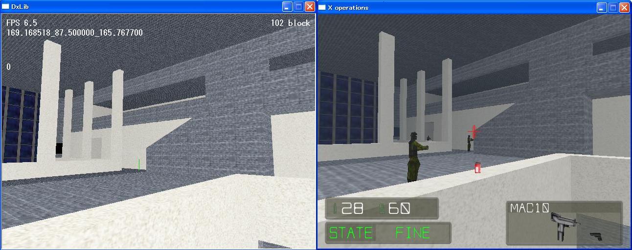 とりあえず、マップに対して簡単に当たり判定を付けて、 歩けるようにしてみました。 って言っても「簡易」であって、おかしな所だらけで、まったく実用段階ではありません。 (左がオリジナル、右がXOPS本物。) こう比べるとマップの表示方法に結構差があるんですよね。