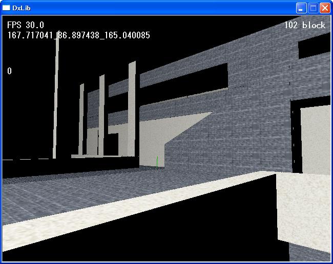 携帯電話を まさかの「Windows Mobile」です。 それに反して、こりゃまた残念な結果になってしまいました・・。 強引に影を付けるとこうなってしまいます。 どうやら外部ファイルのモデルファイル(Xファイルなど)は、環境光が 適切に処理されますが、三角形(ポリゴン)を直接表示してしまうと、 環境光が処理されず影部分が極端に暗くなります。 ライブラリの仕様なのか、DirectX自体の仕様なのか・・。 そうしてなんとかならないのか。 ちなみに「面の向きに対して微妙に明暗が分かれる」というのは、どうやら フォグを濃く(?)すれば自然にそうなるみたいです。 結局未だに「(上記の)影の環境光問題」と「テクスチャマッピング」と「当たり判定」は 未解決です。 ・・・かなり強引な近情報告。